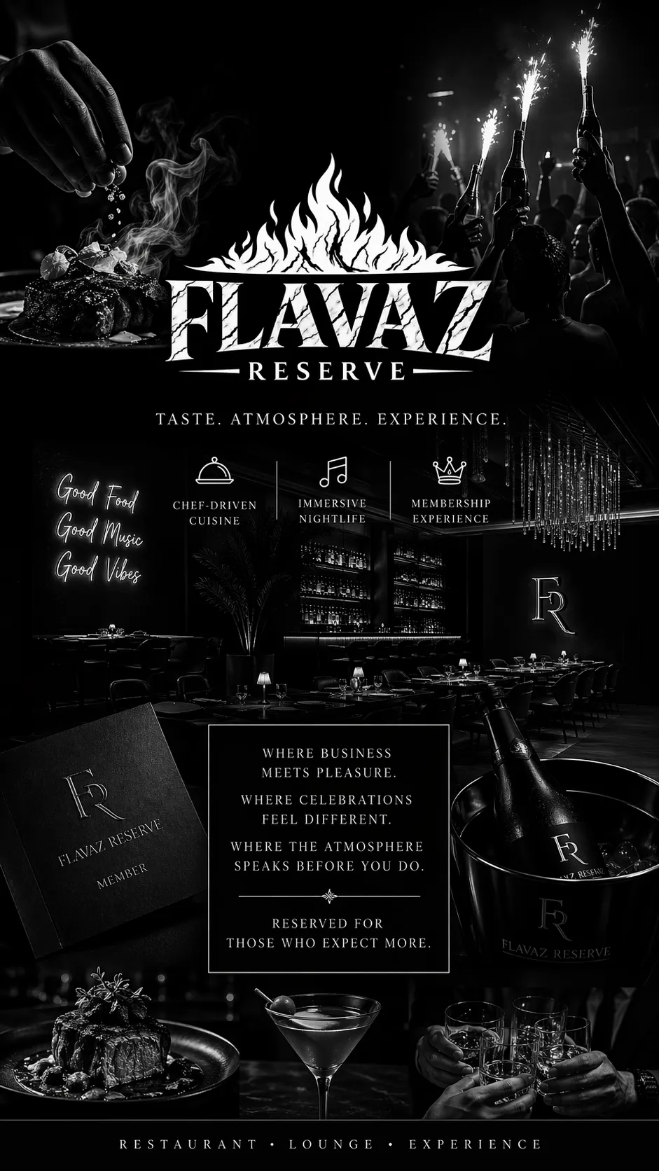 At the intersection of luxury dining and upscale nightlife, Flavaz Reserve was created to redefine how you indulge. From chef-driven cuisine to immersive nightlife, every detail is intentionally designed to deliver sophistication, energy, and exclusivity under one roof.